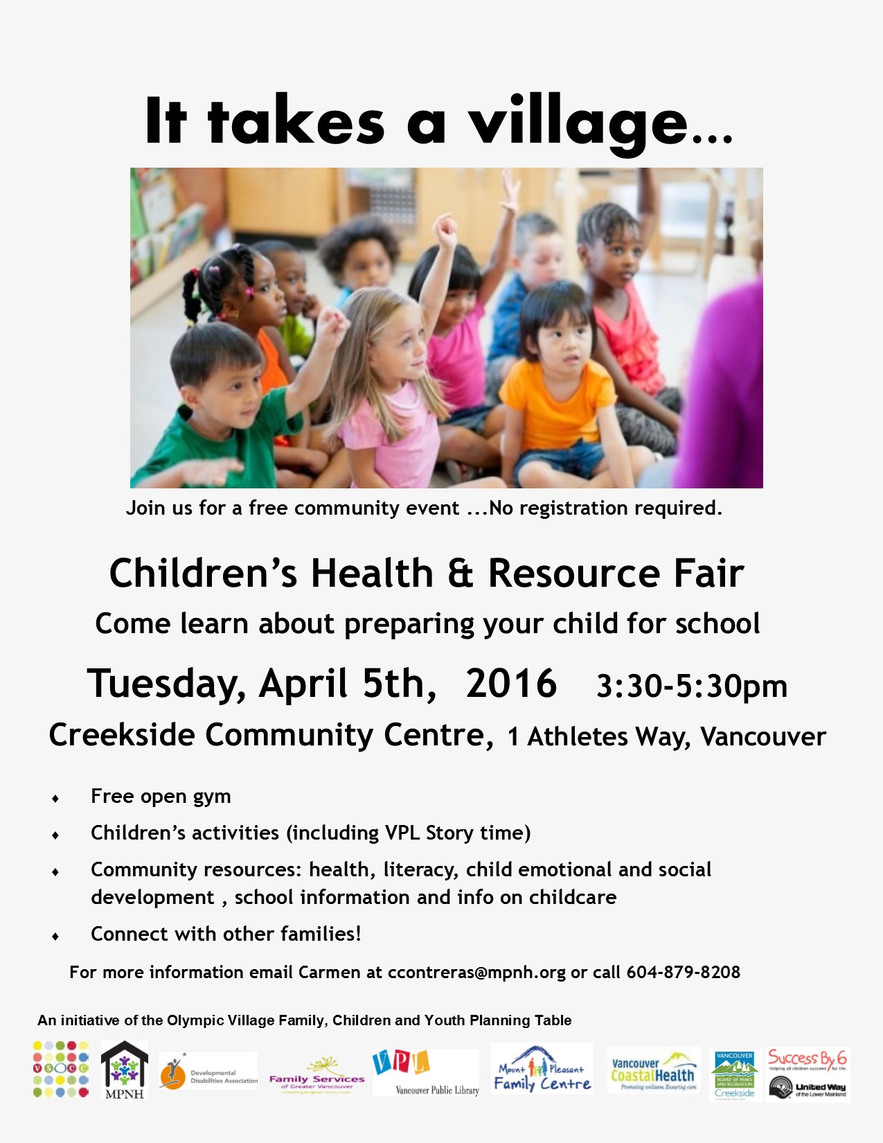 Learn about preparing your child for school at the Children’s Health and Resource Fair.