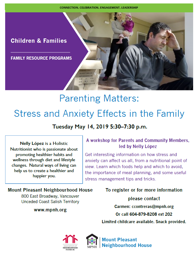 Mount Pleasant Neighbourhood House presents Parenting Matters: Stress and Anxiety Effects in the Family.