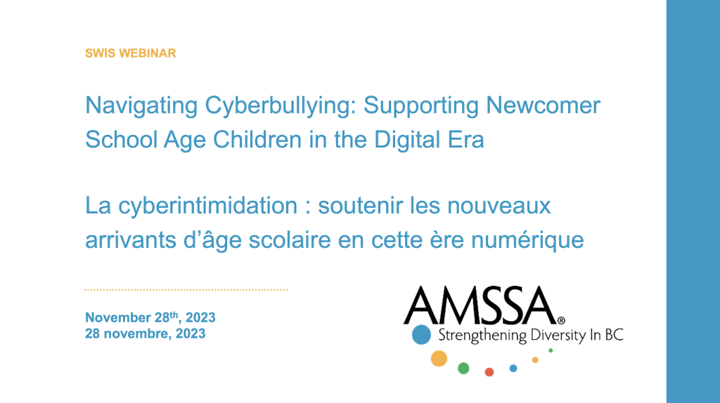 SWIS Webinar: Navigating Cyberbullying: Supporting Newcomer School Age Children in the Digital Era AMSSA hosted “Navigating Cyberbullying Supporting Newcomer School