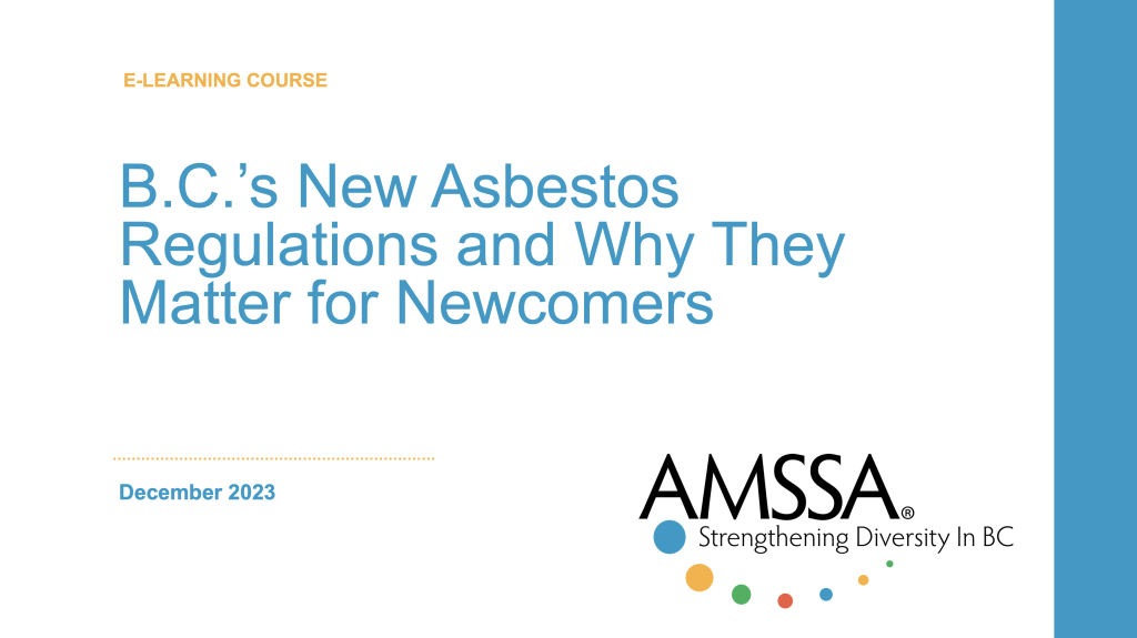 On September 20, 2023, AMSSA hosted a virtual workshop “B.C.’s New Asbestos Regulations and Why They Matter for Newcomers”. Representatives