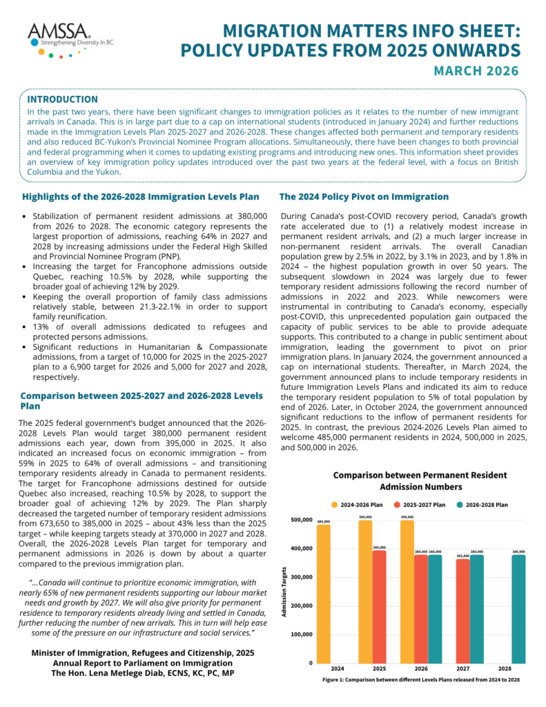 AMSSA is excited to announce the release of the 2025/26 IRCC Programming Service Directory for the BC-Yukon Settlement Sector. This