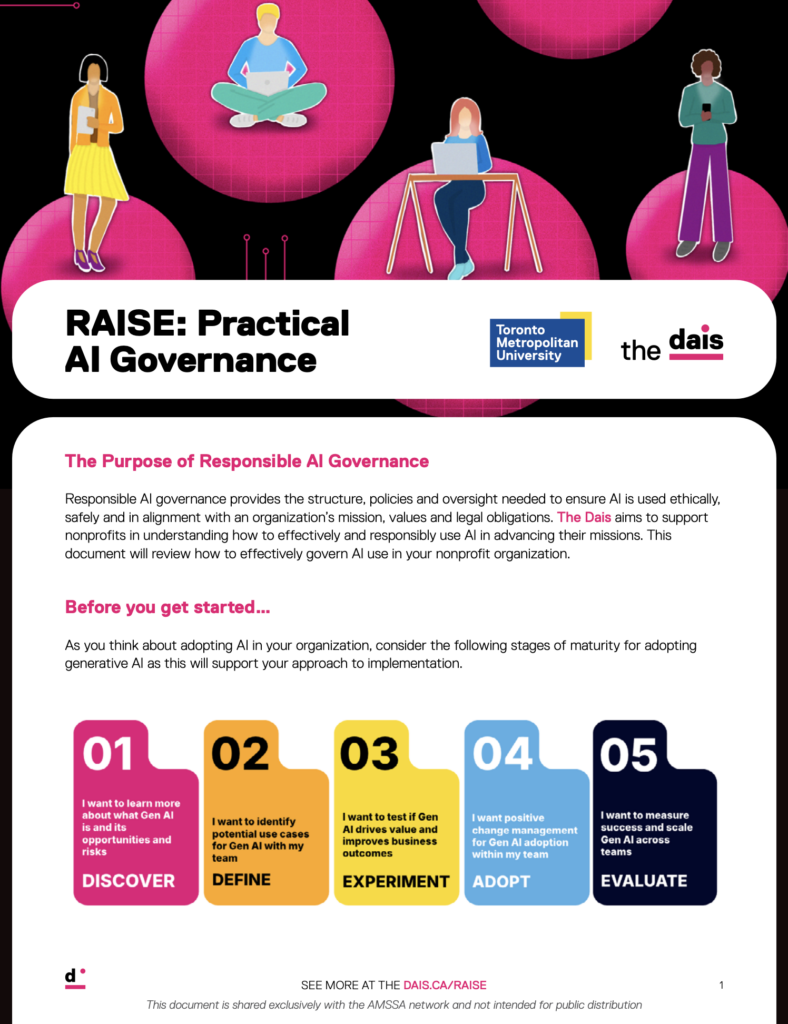 The “Practical AI Governance Guide” was developed by the Dais at Toronto Metropolitan University in collaboration with AMSSA. It outlines